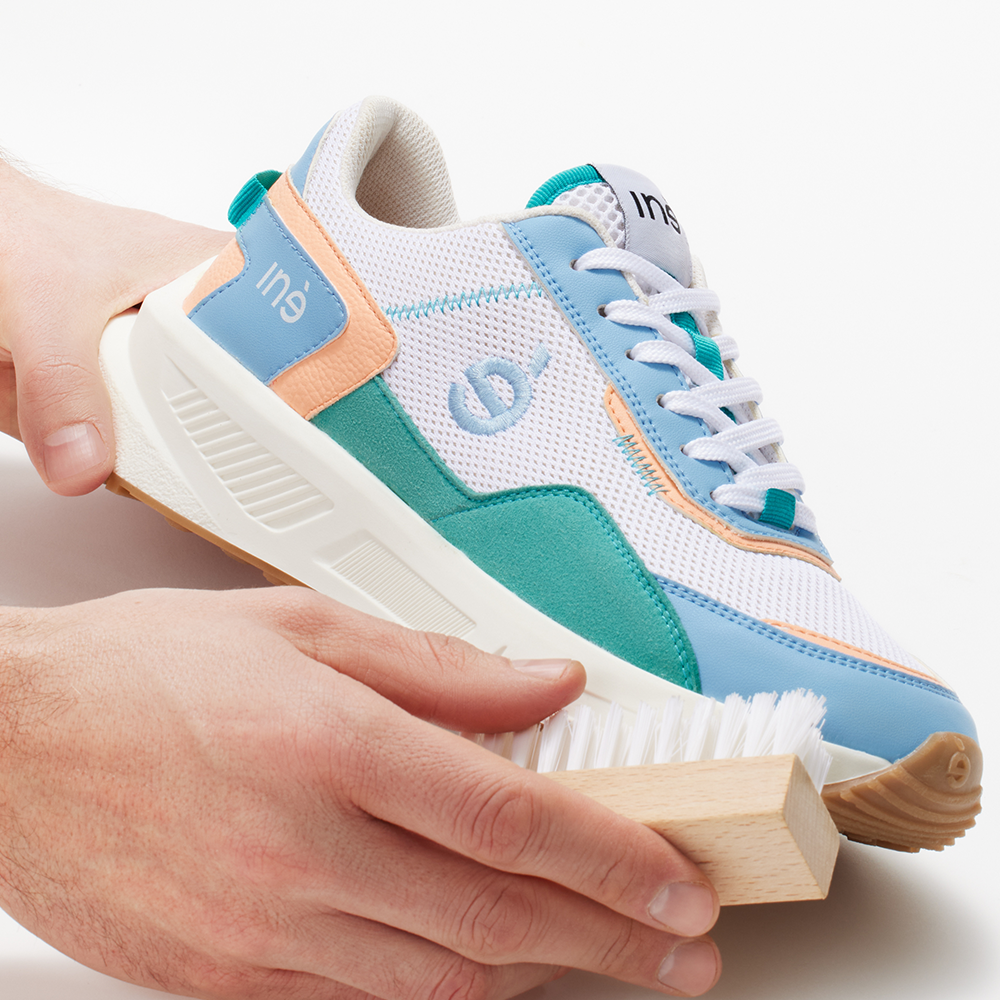 If you’re faced with a stubborn stain, don’t panic—plant-based materials clean up beautifully by hand. For white or coloured sneakers, use a non-abrasive sponge, cold water, and, if needed, a little mild soap.